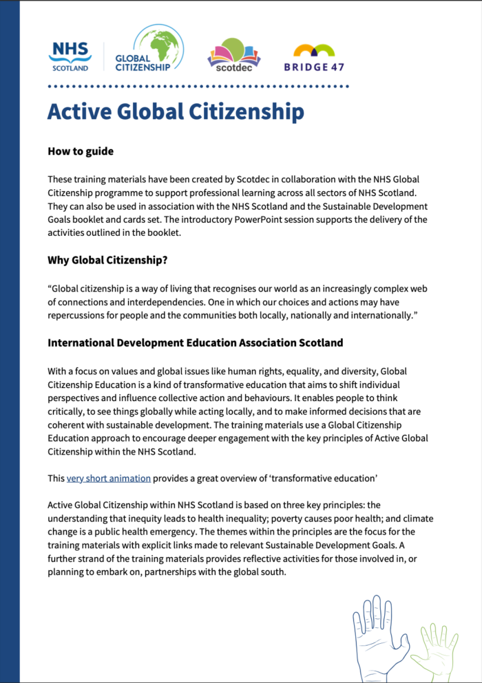The NHS Scotland Global Citizenship programme aims to increase NHS Scotland’s global health contribution by making it easier for all NHS staff to participate in global citizenship, both here in Scotland and overseas.